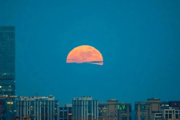 以北京为例,6月11日午夜时分,看到的月球视赤纬为-29度10分,月亮的地平高度不足21度,仿佛低垂地悬在地平线上。
